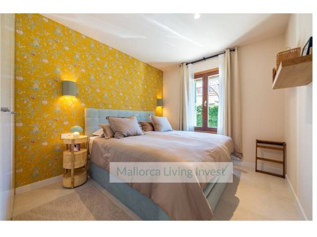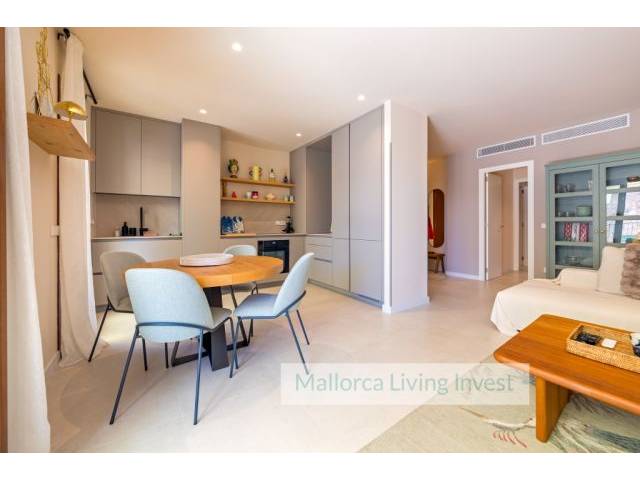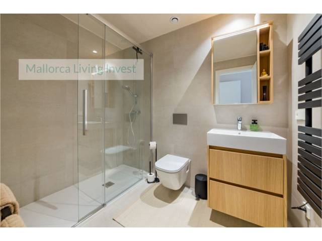 Sie hat zwei Doppelzimmer mit Einbauschränken und 2 Vollbäder (eins en suite). Die Möblierung ist komplett neu. Die Küchen- und Badmöbel sind handgefertigt. Sie wurden ausschließlich für die Wohnung von spezialisierten Tischlern auf Mallorca entworfen und individuell angefertigt.
