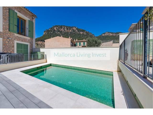 Sie verfügt über ein Wohn-Esszimmer mit offener, voll ausgestatteter Küche, mit direktem Zugang zur Terrasse, mit Blick auf den Pool und einen malerischen Innenhof. Von den Terrassen genießt man herrliche Ausblicke auf die Serra de Tramuntana und die Umgebung.