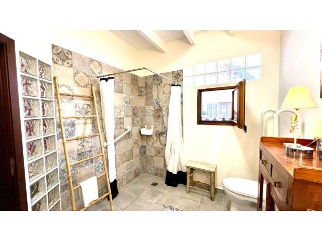 Ausstattung: Keramikfliesenböden in verschiedenen Tönen, Doppelverglasung, blaue Holzjalousien, Sat - TV, Internetverbindung mit 600 Mb, 2 x AC ( heiss-kalt ) im Wohn- Esszimmer und einem Schlafzimmer, elektrische Heizradiatoren, Osmoseanlage geschlossener Kamin, Solarstrom in Kombination mit elektrischem Strom, Heisswasser über elektrische Therme. Voll eingerichtet und ausgestattet ( inklusive Handtücher und Bettwäsche ) in verschiedenen Stilen, welche alle harmonisch aufeinander abgestimmt sind. Die Originalität des Hauses wurde bei den vielen Sanierungen jedoch beibehalten.