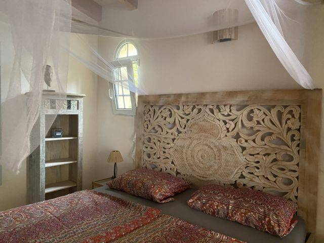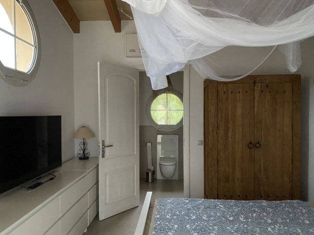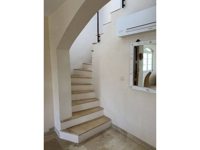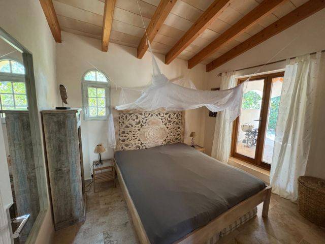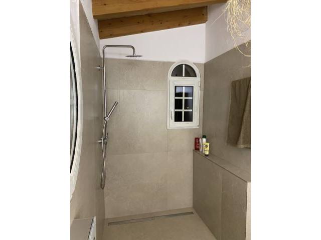 In der oberen Etage gibt es ein schönes Schlafzimmer mit Bad on Suite und eine große Dachterrasse und ein klein wenig Blick auf das Meer.