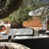 Die 150m² Terrasse mit überdachter Veranda und Gasgrill bietet einen original marokkanischen Esstisch für 8 Personen und eine Lounge Garnitur unter großen Palmen und Olivenbäumen direkt am Pool (10 x 4 Meter).