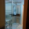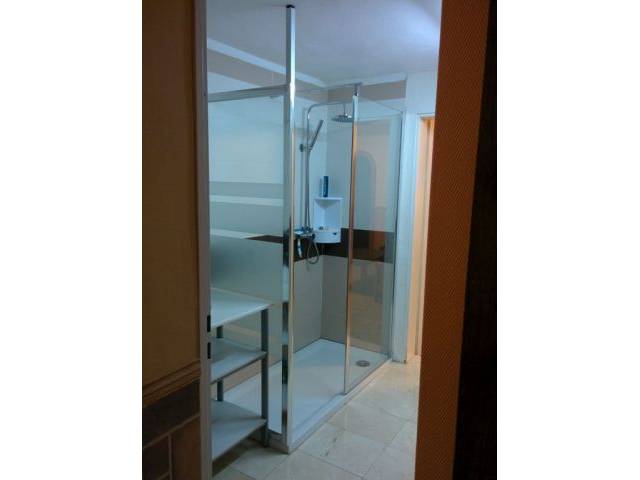 Bad mit Glassdusche und separatem WC, Fitnessraum.