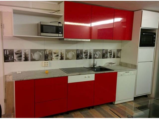 einem Kühlschrank, Geschirrspüler und Mikrowelle.