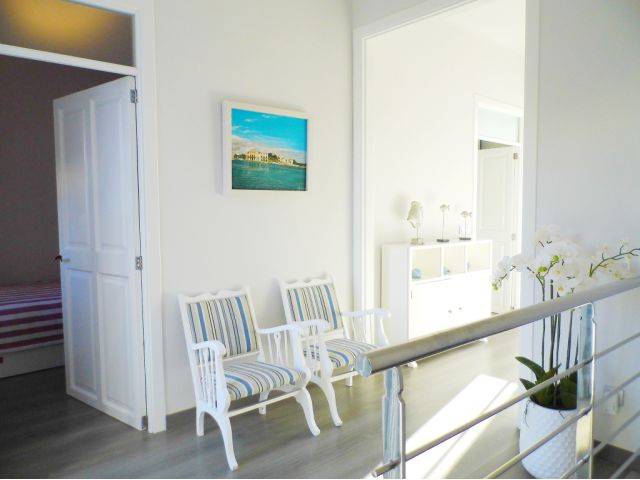 Ausstattung: Marmor- und Parkettböden, Einfachverglasung, blaue Aluminium-Fensterläden, 2 x heiß-kalt-Klimaanlagen in 2 Schlafzimmern im 1. Stock, spanische TV-Antenne, WLAN Internet, GESA Strom, Einbauschränke in den Schlafzimmern, Stadtwasser, helle Räumlichkeiten, Heisswasser über elektrische Therme. Modern möbliert zu 100% im mediterranemStil inkl. Bettwäsche, Handtücher und ein Babybett.