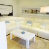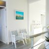 Erdgeschoss: Über eine Stufe gelangt man in das Wohnzimmer, welches mit dem Esszimmer verbunden ist. 1 Badezimmer mit Dusche, 1 Schlafzimmer mit Doppelbett und eine moderne weiße elegante Einbauküche, die mit Keramikkochfelder, Backofen, zweitüriger Kühlschrank, Geschirrspüler und Mikrowelle ausgestattet ist.