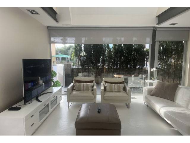 Ausstattung: Fussböden in weiss poliertem Microzement im Erdgeschoss und Parkett im 1. Stock, Doppelverglasung, elektrische Fensterjalousien im Wohn,- Esszimmer, TV Satellitenschüssel, Internetline derzeit ohne Glasfaser ( jedoch möglich ), AC ( heiss-kalt ) in allen Räumen, Stadtwasser, GESA Strom, Heisswasser über Elektrotherme, Trinkwasser über Osmoseanlage. Möbliert zu 100 % im elegantem- moderem Stil