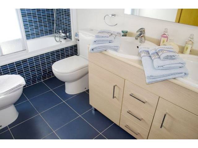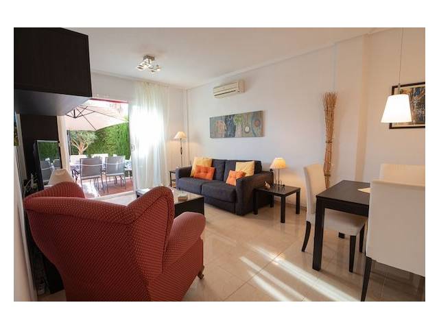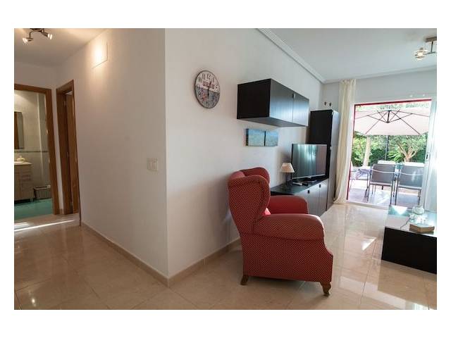 Räumlichkeiten: Das Parterreapartment von ca. 80 m2 Wfl. wurde 2009 erbaut und hat ein Wohn,- Esszimmer mit Ausgang zur Terrasse / Garten, eine separate moderne Einbauküche mit elektr. Ofen, Cerankochfelder, Kühlschrank und Mikrowelle und einer kleinen Waschküche mit Waschmaschine mit Zugang zu einem kleinem Innenhof. Die beiden 2 Badezimmer ( eines Badensuite) haben Dusche und Badewanne. Die beiden Schlafzimmer sind mit Einbauschränken und AC ( heiss-kalt) versehen.
