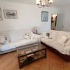Das helle Wohn- Esszimmer ist mit zwei Sofas und einem Esstisch ausgestattet und bietet Zugang zu beiden Terrassen.