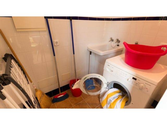 C-Kleines Haus Vaquería: Ca. 120 m2 auf 2 Etagen: Im Erdgeschoss haben wir ein Wohn,- Esszimmer, 1 WC, eine Einbauküche mit Cerankochfeldern, einen elektrischen Backofen, einen Kühlschrank, einen Geschirrspüler, eine Mikrowelle und einen eigenen Waschraum mit Waschmaschine.