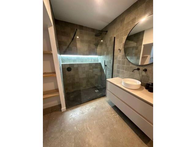 Wir haben ein modernes Wohn-Esszimmer, eine elegante Einbauküche welche ausgestattet ist mit Cerankochfeldern, elektrischem Ofen, Kühlschrank, Geschirrspüler und Mikrowelle sowie alle notwendigen Küchengeräte. 2 Doppelzimmer mit Einbauschränken, 2 Badezimmer mit Dusche - eine davon in Suite.
