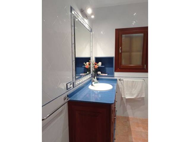 Räumlichkeiten: Die Parterrefinca von ca. 230 m2 Wfl hat 4 Schlafzimmer ( Einzel und Doppelbetten), 2 Badezimmer ( 1 x mit Dusche und 1 x mit Badewanne / Duche, grosses Wohn,- Esszimmer mit geschlossenem Kamin und eine komfortable Einbauküche mit allen Elektrohaushaltsgeräten inkl. Spülmaschine und Ausgang zur Terrasse.