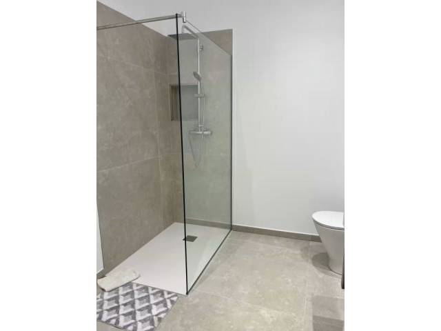 Das Badezimmer ist elegant und praktisch, mit einer großzügigen Dusche und hochwertigen Oberflächen. Es gibt außerdem einen kleinen, lichtdurchfluteten Patio, ideal für eine Pause, um frische Luft zu schnappen und bei einer Tasse Kaffee oder einem Glas Wein zu entspannen.