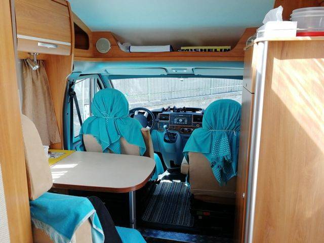 Das Fahrzeug ist in exzellenten Zustand. Mit Ford Diesel 150 PS 68.000km, Mit ausfahrbarer Pattform fur einen Scooter Suzuki 125 mit 7000km - großer Kofferraum fur 2 Fahrrader. Automatische satellitenantenne und TV - neue Batterie - kitchenette Gas 2 flammig ‚Toilette Mit Dusche, Kuhlschrank 12v 220v u gas, , 100 L Wasser, Heizung, Ventilatoren, Alarmanlage, Markise ausfahrbar, viel Zubehör , Franz. Zulassung, steht zur Zeit Mallorco, Platz a.W. Insel Oleron Frankreich
