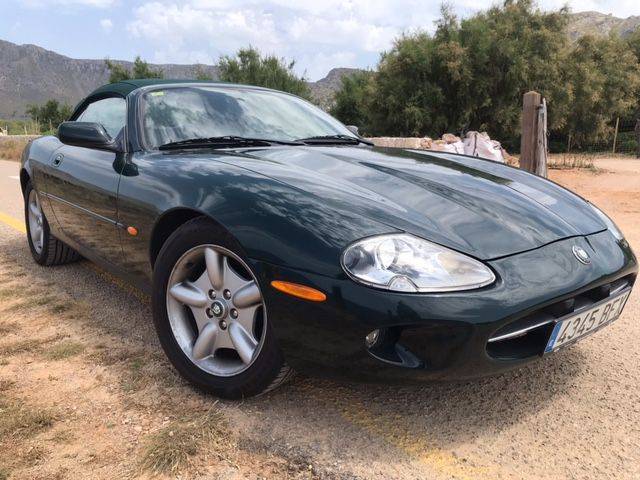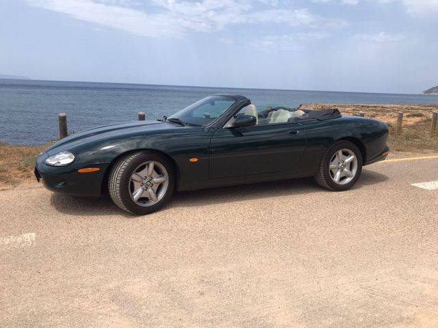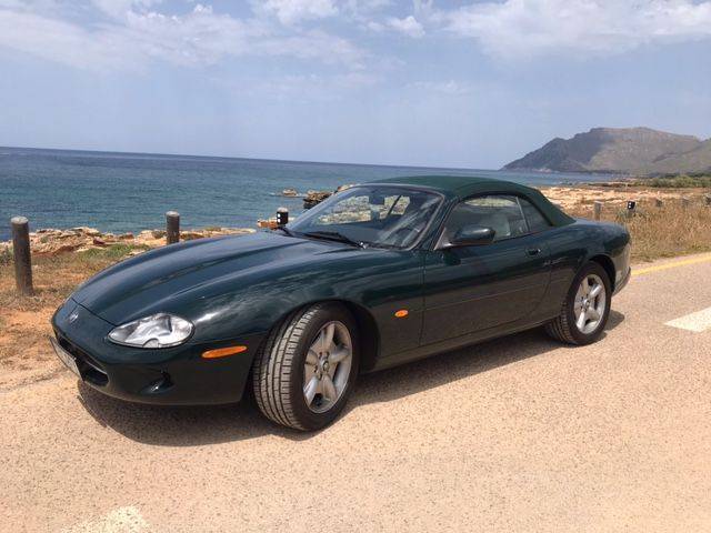 – English Racing Green. Ein komplett restauriertes Jaguar XK8 Cabriolet (Garagenfahrzeug) mit TÜV, in der eleganten Farbe English Racing Green mit passendem Stoffverdeck. Das Fahrzeug wurde von Jaguarmeister Horstmann Oldenburg komplett restauriert (mit vollständiger Dokumentation) und befindet sich in einwandfreiem Zustand. Fahrzeugdetails: Modell: Jaguar XK8 Cabriolet, Automatik Erstzulassung: 12.11.1996 Kilometerstand: 116.200 km Leistung: 209 kW (284 PS) Kraftstoff: Benzin Farbe: English Racing Green Innenausstattung: Komplett beige Lederausstattung, Armaturenbrett und Mittelkonsole in Edelholz Ausführung: 2. Hand Zustand: Unfallfrei, gewartet mit Serviceheft, aufgearbeitete Lederausstattung Neuer TÜV Ausstattung: Fahrzeug für deutschen Markt Armlehnen Elektrische Fensterheber Elektrische und beheizbare Außenspiegel Elektrische Sitzverstellung Automatisch abblendender Innenspiegel Lederlenkrad Lordosenstütze Sitzheizung Zentralverriegelung Bordcomputer Multifunktionslenkrad Servolenkung 18 Zoll Alufelgen (245 vorn, 255 hinten) Klimaautomatik ABS Elektronische Wegfahrsperre ESP Nebelscheinwerfer Traktionskontrolle Frontairbags Ersatzrad Sportsitze Diebstahlwarnanlage Besonderheiten: Komplettrestaurierung durch Jaguarmeister Horstmann Oldenburg Komplettpolsterung in hochwertigem beigefarbenem Leder Stoffverdeck Racing Green