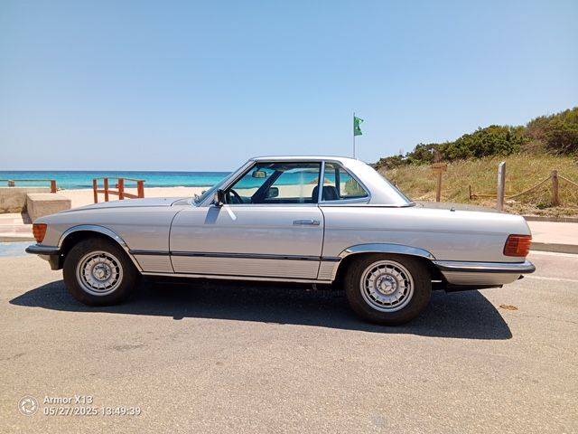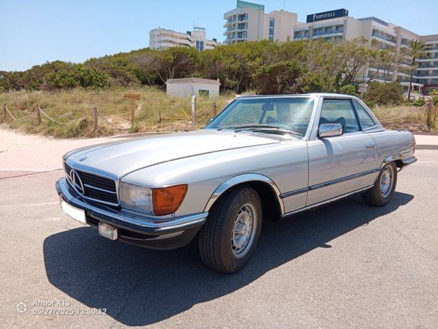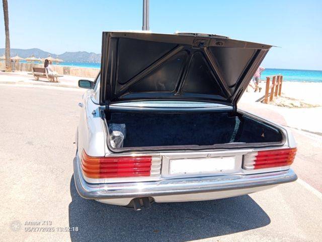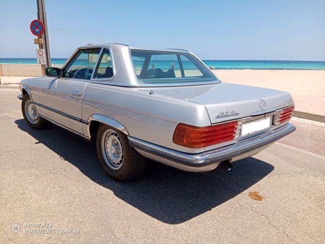 Fahrzeug: Mercedes-Benz 450 SL (R107), Baujahr 1978, Erstzulassung 17.01.1979, deutsche Ausführung (kein US-Modell). Zustand: Hervorragend, in Top-Zustand restauriert, gewartet von Mercedes-Benz Classic Cars Rossier (Deutschland), bis vor kurzem in einem Oldtimermuseum ausgestellt. Kilometerstand: 143.000 km (Stand 2022). Farbe: Exterieur Silbermetallic, Interieur Dunkelblaues Leder, Hardtop in Wagenfarbe, Dunkelblaues Softtop (in perfektem Zustand). Motor: 4,5-Liter-V8, 255 PS bei 5.000 U/min, 350 Nm Drehmoment bei 3.000 U/min, Direkteinspritzung, Automatikgetriebe. Ausstattung: Servolenkung, elektrische Fensterheber, Scheibenbremsen, Zentralverriegelung, Sicherheitsgurte, Radialreifen. Extras: Bluetooth-Audiosystem (moderner Sound mit klassischer Ästhetik), Windschott für Cabriofahren