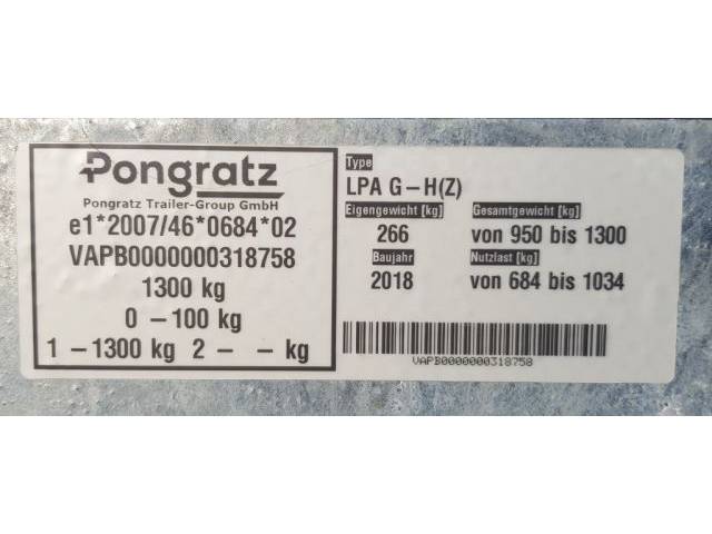 PKW-Anhänger ‚Pongratz LPA 250 1,3 Tonnen‘: Außerdem habe ich noch einen Anhänger (siehe zweiten Fahrzeugschein) zum Verkauf. Gerne auch separat oder einzeln.