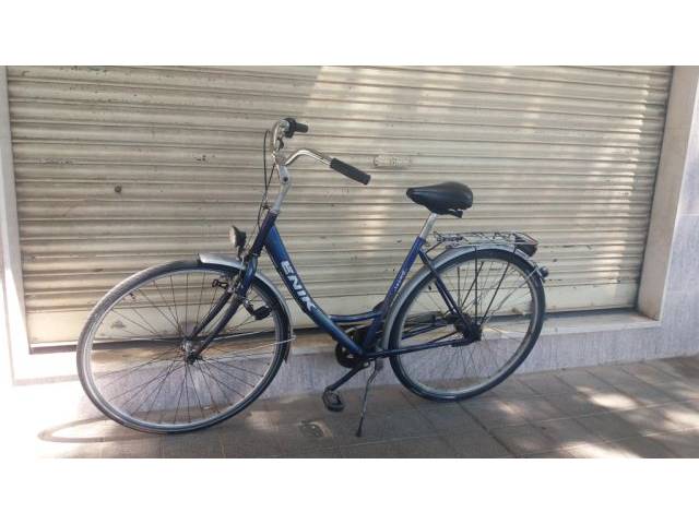 Tourenrad im nordischen Stil, mit Rücktrittbremse am Hinterrad, Belagbremse am Vorderrad, 7 Gängen, Dynamo mit Vorder- und Rücklicht. Es ist ein altes Fahrrad, aber es ist überarbeitet und funktioniert.