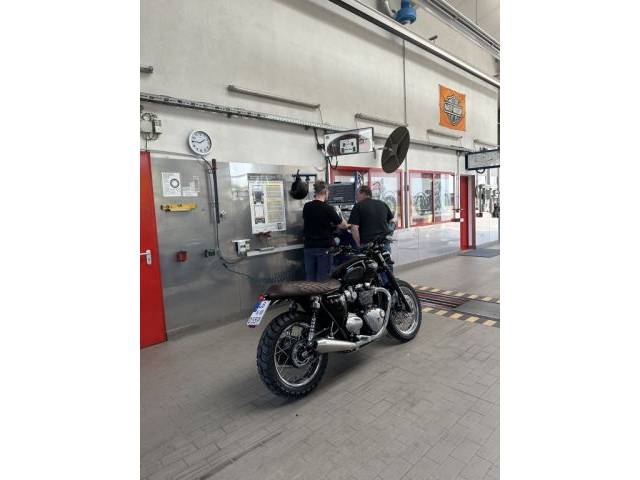Zum Verkauf steht eine Triumph Bonneville T120, Baujahr 2016, mit deutscher Zulassung, TÜV abgelaufen 5/25.