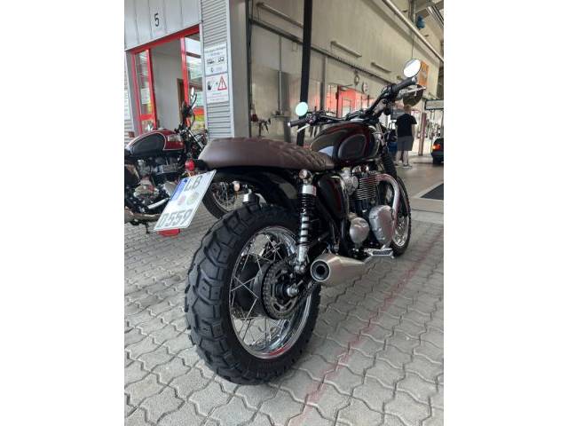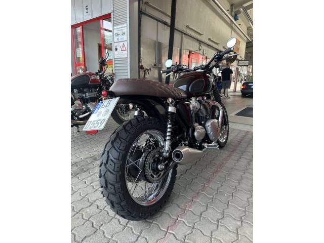 Folgende Umbauten, kurzes Heck, kurzes Schutzblech vorne, breiterer Lenker, Unterfahrschutz, Sitzbank vom Sattler bezogen, Miniblinker, Sportauspuffanlage von der baugleichen Triumph Thruxton, Heidenau Reifen mit grobem Profil.