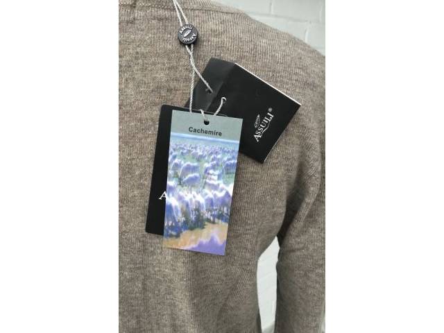 NEU! Edle Strickjacke Cardigan von Assuili, Italy, Gr.M, Beige/ Grau, Cashmere Seide, ungetragen, Neu mit Etikett! Nähe Llucmajor.