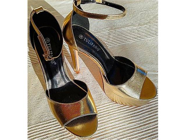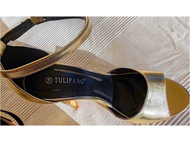 goldene High-Heel-Plateau-Sandalen der Marke Tulipano, Gr. 38, wie Neu