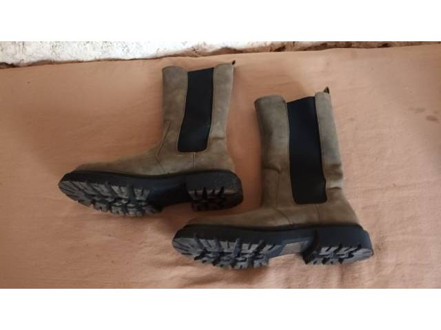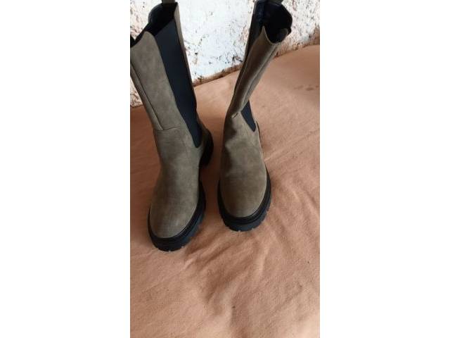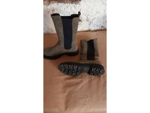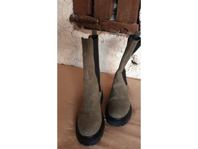 Nur 2 x getragene Halbstiefel - olivfarben, Grösse 41 mit Gummizug seitlich, velour