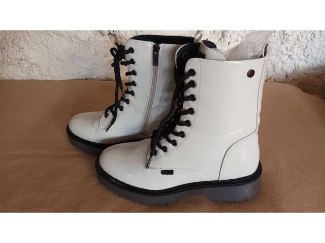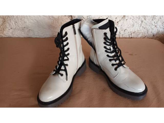 Nur 2 x getragene Herbst Halbstiefel - weiss- Lack - Grösse 41