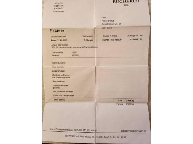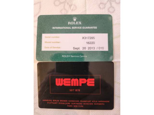 Rolex Stahl, automatic,Modell:16220.Kaufdatum: November 1991.Komplette Revision im September 2013 für 2400 €.Laut Rechnung wurde die Uhr komplett ersetzt .Seither nie mehr getragen. Zustand ist praktisch neuwertig.!!!! Wurde zwischenzeitlich auf automatischem Uhrenbeweger auf Genauigkeit geprüft. Keine Zeitdifferenzen!!! Abholung in Peguera. Tel.602617836