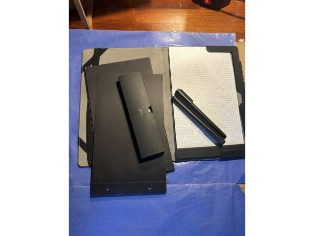 Akku defekt, funktioniert aber einwandfrei mit Kabel, alles Zubehör, zwei Stifte mit Ersatzminen, zweimal Zeichenblock, Mappe etc. Originalkarton hab ich auch noch irgendwo, wenns wer will