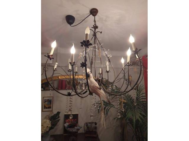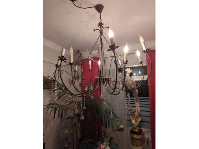 große Lampe oder eher Kronleuchter. Mit Kristallen behängt. War sehr teuer im Einkauf.