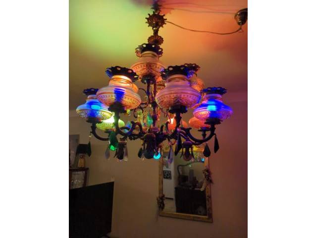 Sehr schöne antike Lampe. Mit Kristallen und Glaskuppeln.