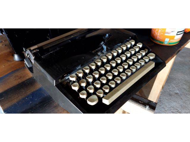 Antikes Telefon mit Kurbel , Loewe Opta aus den 50er jahren, alte Schreibmaschine, Reiseschreibmaschine, tragbarer Röhrenfernseher, erstes Hagenuk Mobiltelefon.