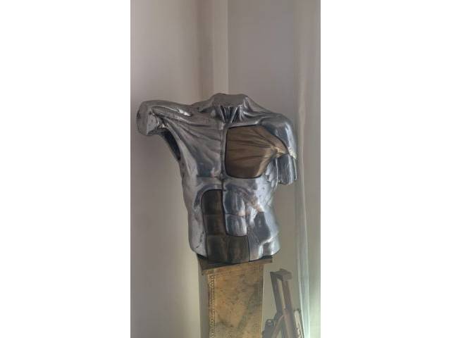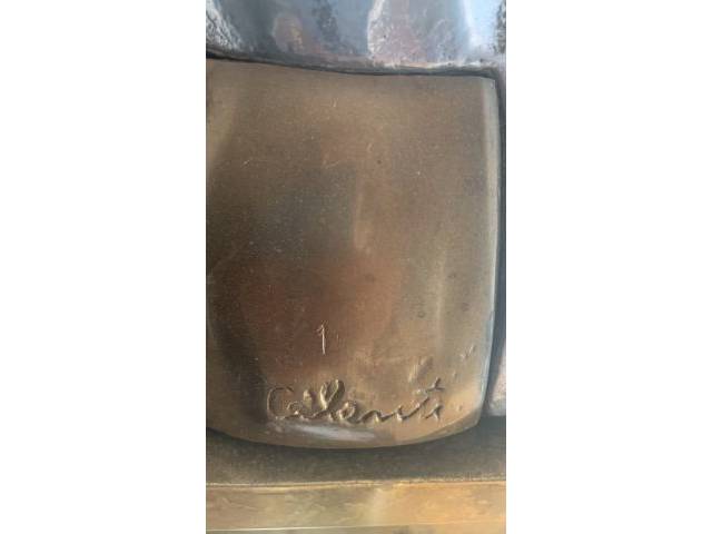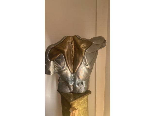 Ein Teil des Unterleibs und der Brustmuskeln ist aus Bronze, die übrigen Teile sind aus Silber gefertigt. Die Skulptur ist schwer und kraftvoll und drückt Stärke aus. Dieser Torso stammt aus den 70er Jahren. In den 80er hat der Künstler diesen Torso in kleinerer Stückzahl produziert. Die Nr. 47 wurde letztes Jahr online für rund 1830,00 Euro verkauft. Bei den Torsos aus den 80er, handelt es sich aber Aus Bronze und grün, schwarzen Harz. Ich habe vor Jahren eine Schätzung reingeholt. Die war bei über 4500 Euro und man sagte mir das Cilenti in diesen Material nur die Nr. 1 Geschaffen hat. Maße: Höhe: 51 cm (20,08 in)Breite: 54 cm (21,26 in)Tiefe: 30 cm (11,82 in). Bei echten Interesse ruhig ein realistisches Angebot machen.