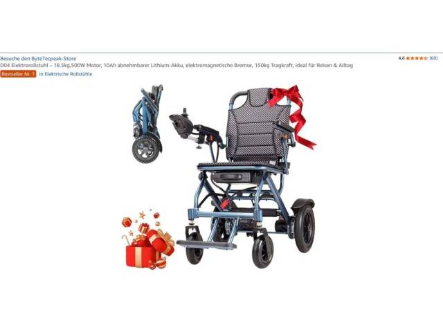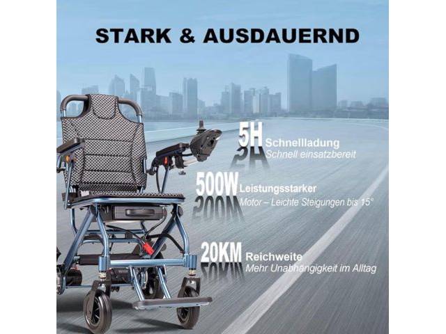 D04 Elektrorollstuhl 18,5 kg, 500W Motor, 10Ah abnehmbarer Lithium Akku, elektromagnetische Bremse, 150 kg Tragkraft, ideal für Reisen und Alltag.