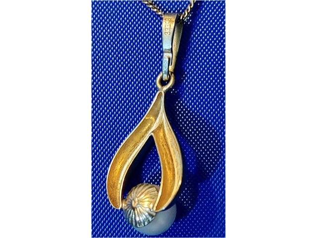 der Anhänger 8 K Gold wirkt auch sehr smart, fällt aber durch die Akoya Perle auf.