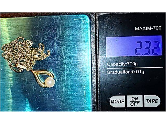 Halskette mit Anhänger 8 K Gold in Tropfenform mit Akoya Perle