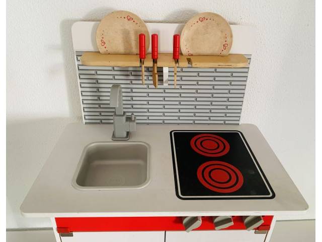 Kinderküche der Marke HAPE, aus Holz gefertigt. Gebraucht, aber in gutem Zustand.