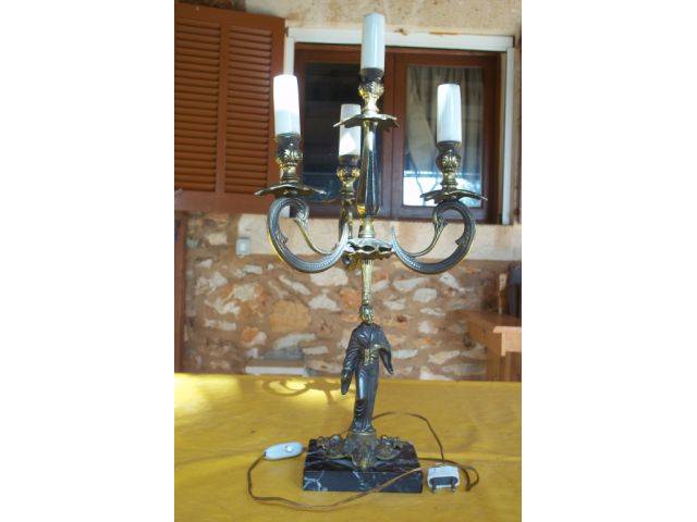 Tischleuchte aus Bronze und Sockel aus Marmorstein. Höhe 50 cm. Guter Zustand. Unterstützt jede Art von Glühbirne