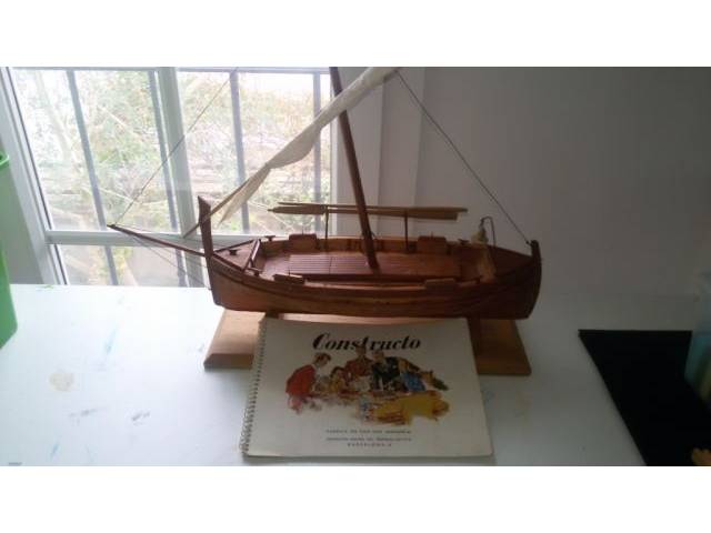Modellschiff in Plexiglaa Vitrine. Vitrine etwas beschädigt aber brauchbar