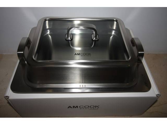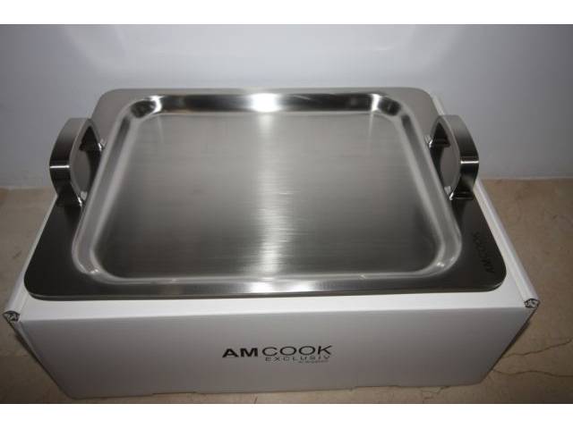 AMcook Edelstahl-Teppanyaki-Platte (Plancha) mit Glas-Edelstahl-Deckel in Originalverpackung.