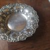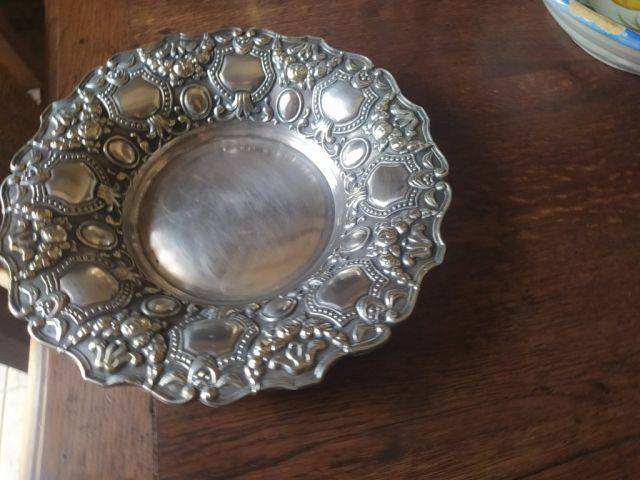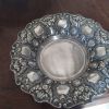 Antikes dekoratives Tablett aus Neusilber oder Metall mit geprägtem und ornamentiertem Design