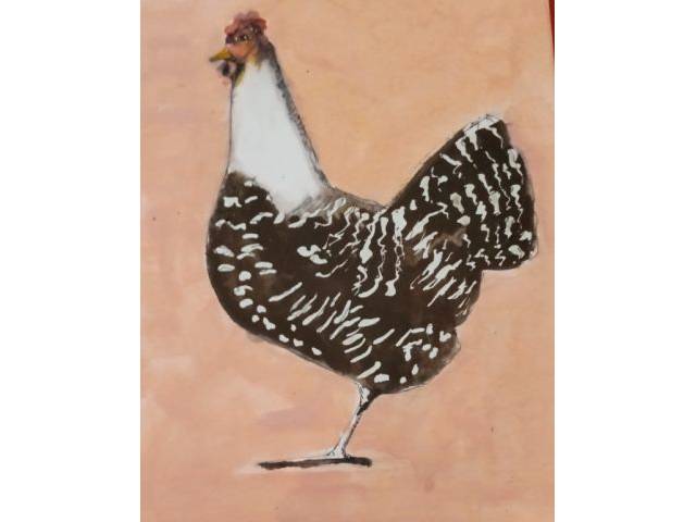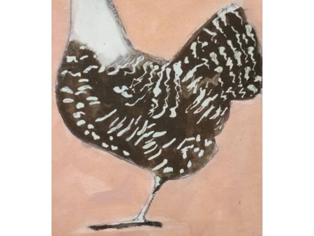 Aquarell einer Henne in Schwarzweiß