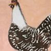 Wunderschönes Aquarell einer Henne mit schwarzem und weißem Gefieder, ideal zur Dekoration jeden Raums.