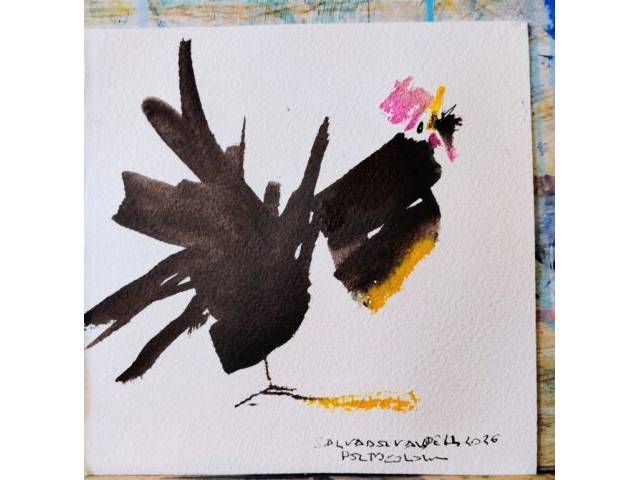 Aquarelloriginal eines Hahns ,ausgeführt in expressiven Pinselstrichen ,f