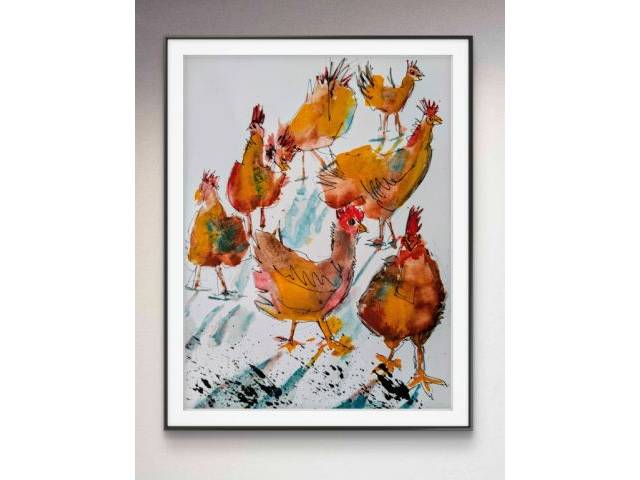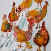 Originalillustration von Hühnern, ausgeführt in Aquarell