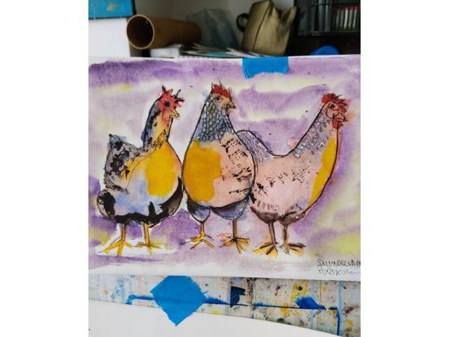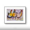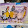 Schönes Aquarell von drei Hühnern, ein einzigartiges Aquarell