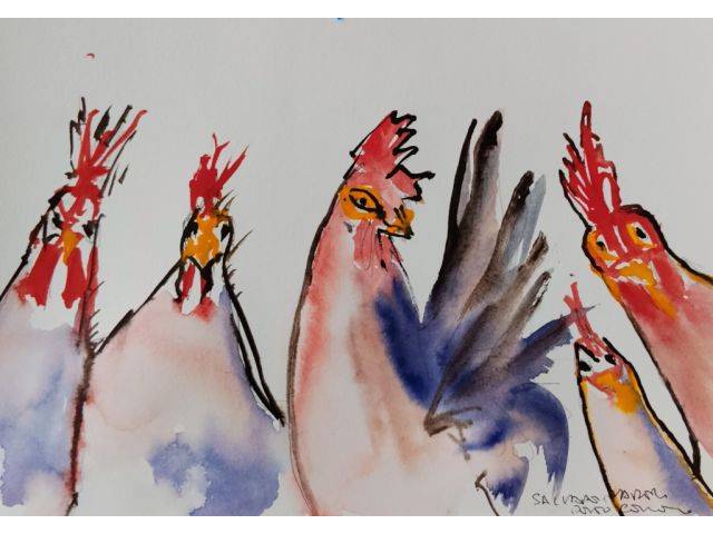 Aquarell von Hühnern auf Papier