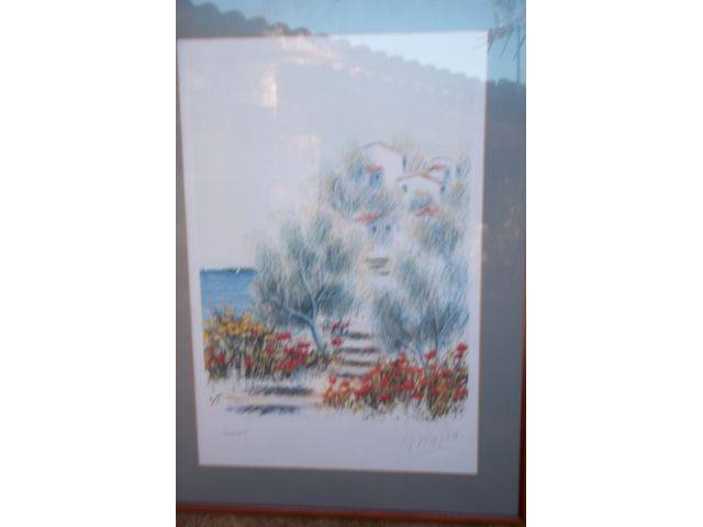 Aquarell gerahmt und signiert von seinem Autor "MORGAN", Titel "Summer". Maßnahmen Tisch 70 x 50. In FELANITX