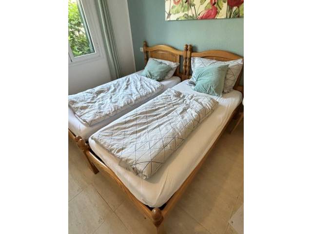 Hier verkaufe ich für kleines Geld 2 sehr gut erhaltene Bettgestelle mit den Maßen 90 x 190 cm aus Holz. Keine Matratzen und Lattenroste dabei. Schrauben sind dabei. Sind sehr schnell aufgebaut.