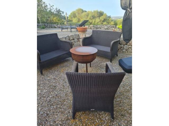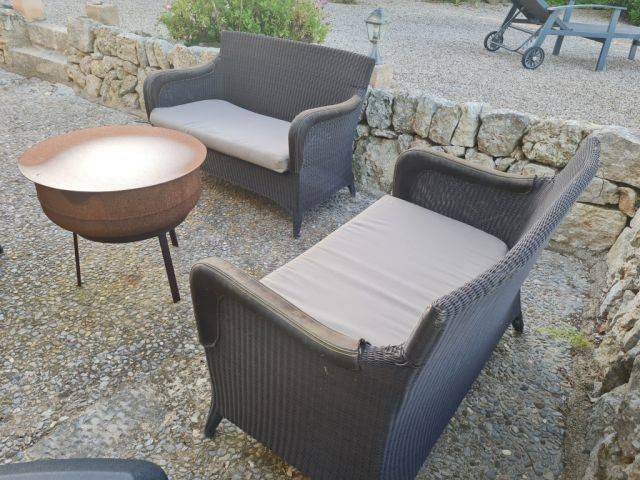 2 x 2 Sitzer und 1 x Sessel, jeweils mit Auflage. Diese hat Reißverschluss und ist waschbar. Alles ist gebraucht. Zur Selbstabholung